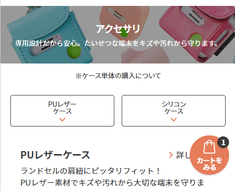 • 製品サイトで「カートに入れる」ボタンをタップする