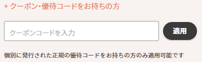 赤字の「クーポン・優待コードをお持ちの方」をタップし、クーポンコードを入力して「適用」する。