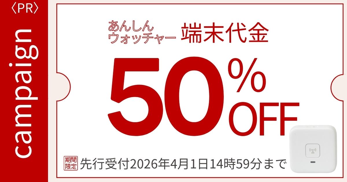 「あんしんウォッチャー」は期間限定で本体50%オフキャンペーンがスタートしました。
