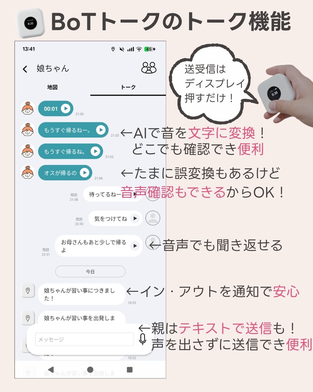 BoTトークは、トーク機能搭載の見守りGPSのパイオニア的存在です。