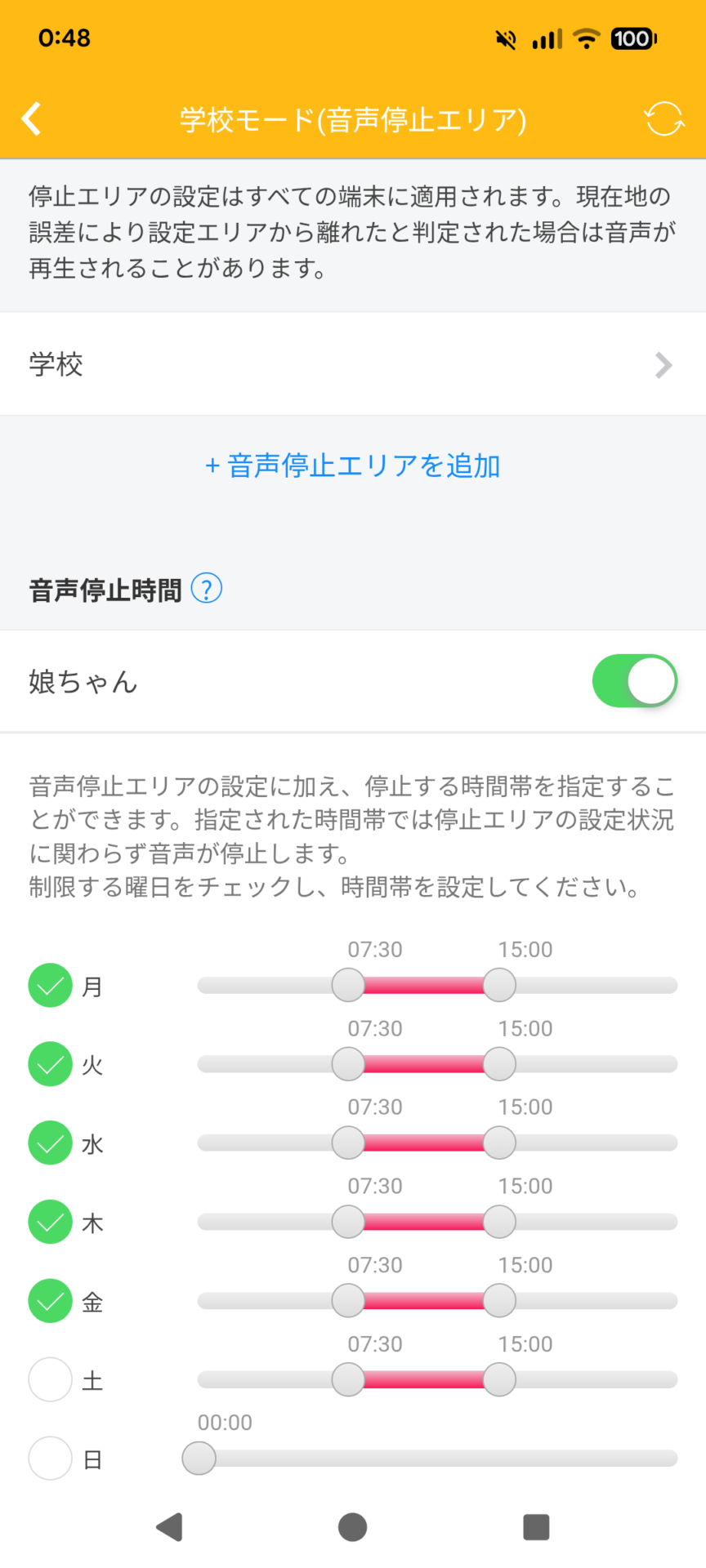 ちなみに指定エリア内で音声を強制停止設定できる学校モードもあります。