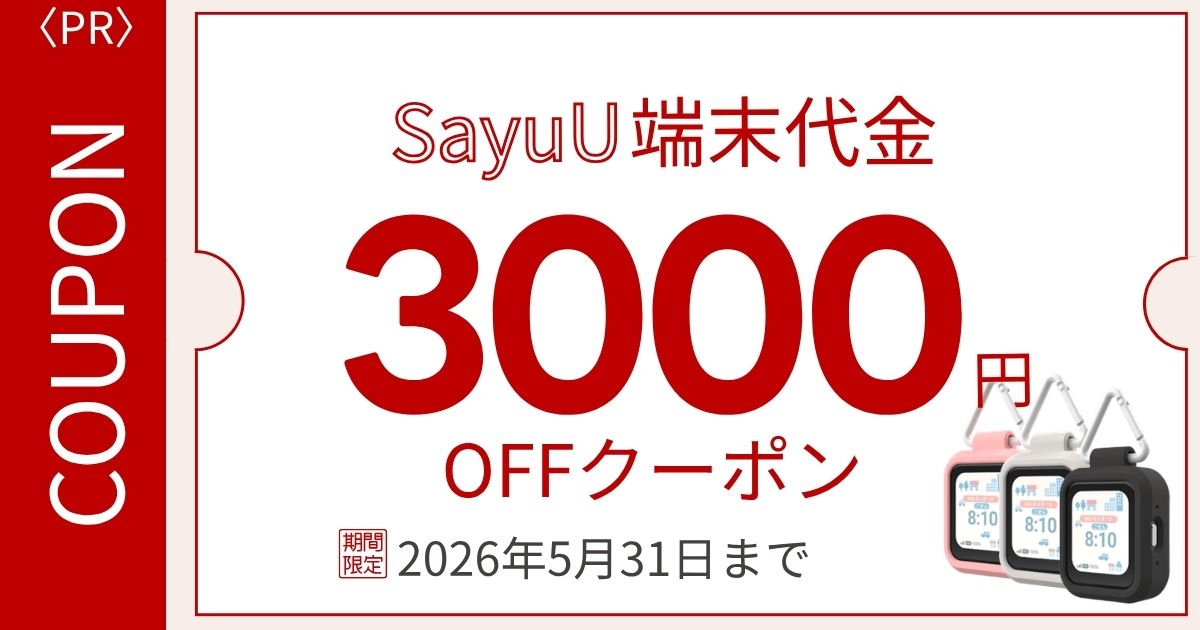 TOYOTAのリリースした子供見守りGPS「SayuU(サユー)」のクーポン・キャンペーンをまとめました。