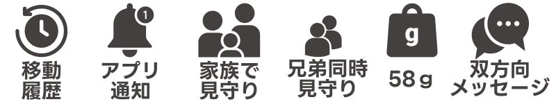 | メリット | ・ 現在地や移動履歴がわかり安心・ ・ SOS通知で安心 ・ 通話もチャットもでき安心 ・ 持ち運びやすいケース2タイプ |